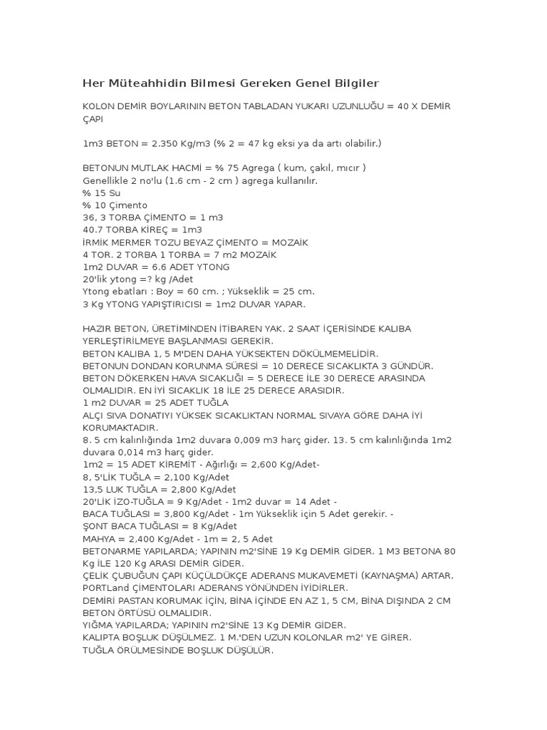 2 mm kalınlık için 3,5 kg/m 2. M20 dereceli nominal karışım beton için 1cüm m20 için (1: Tavan sıvası = 1 m3 mil kumu + 7 torba çimento harcıyla serpme atıldıktan sonra;1 m3 mil kumu + 5 torba çimento + 4 torba kireçle 1.2 cm. 100 kare metre ev villa yapımına kaç torba kg çimento gider. 1m2 duzar imalatı için kaç adet ytong kullanılır?